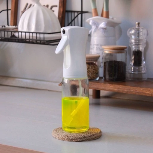 این اسپری روغن پاش دارای مخزن مخصوص شیشه ای می باشد و با استفاده از نی و سری اسپری کن آن ، می توانید روغن و مایعات مورد نظر خود را به صورت اسپری به بیرون از مخرن و بر روی ماهی تابه و قابلمه و باربیکیو و غیره و یا مواد خوراکی و غذاهای طبخ شده بپاشید. شما می توانید به آسانی روغن مایع و زعفران ، آب لیمو ، آبغوره ، روغن زیتون ، روغن آفتاب گردان و هر نوع روغن مایع ، گلاب و یا انواع مایعات خوراکی که مد نظر دارید، با این دستگاه اسپری کنید. اسپری روغن پاش برای مصرف حداقلی روغن و کسانی که رژیم غذایی کم روغن دارند یکی از ابزارهای بسیار مهم و کاربردی و واجب بوده و بنظر برای پخت و پز و آشپزخانه لازم و ضروری است.