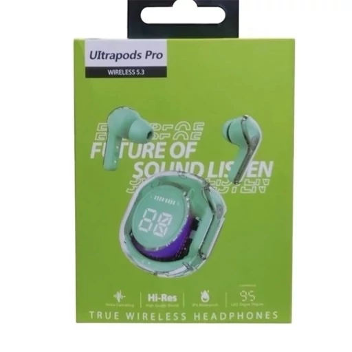 هدفون بلوتوثی مدل Ultra Pods Pro با ظاهر زیبا و ظریف محصولی مناسب و یک هدیه عالی برای نزدیکانتان به شمار میرود هدفونهای True Wireless‏ ‏Stereo که مدل ultra pods pro هم یکی از آنها به شمار میرود میتوانند کیفیت صدای فوق العاده ای را با باس عمیق و تریبل شفاف تولید کنند. صدای استریو Hi-Fi و تماسهای واضح گوشیهای بلوتوثی بیسیم و بلندگوهای 6 میلی متری به همراه بیس قوی شفاف متعادل و عملکرد سه برابری برای بازتولید زنده صدای دریافتی و ارسالی از جمله ویژگیهای این هدفون هستند. هدفون بلوتوثی مدل Ultra pods pro دارای فناوری حذف نویز ‏CVC8.0 است که موسیقیهای آرام و تماسها را در محیط های پر سر و صدا قابل شنیدن میکند محفظه شارژ این هدفون دارای باتری قدرتمند 2000 میلی آمپر ساعتی بوده و ظرفیت باتری گوشیهای آن معادل 50 میلی آمپر ساعت است. این باتری تا 750 ساعت در حالت زمان آماده به کار استندبای قابلیت شارژدهی دارد و زمان مکالمه و پخش موسیقی آن نزدیک به 9 ساعت با هر بار شارژ است. این هدفون بلوتوثی دارای قابلیت سوئیچ MASTER-SLAVE است که با این قابلیت میتوانید به طور جداگانه از هر گوشی به عنوان گوشی اصلی استفاده کنید خروجی صدای گوشیها هم بسیار واضح شفاف متعادل و دارای بالانس بسیار مناسب و استاندارد است. در نهایت طراحی انحنادار کویل و ساختار با کیفیت اجزای آکوستیک این هدفون باعث میشوند تا صدایی غنی و خالص را تجربه کنید