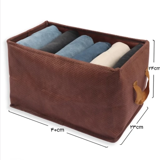 توضیحات باکس در اندازه 25*25*40 سانتیمتر مناسب شلوار و لباس بزرگسال و… دیواره مقوایی ندارد جنس اسپان باند وزن پارچه 120g اسکلت مفتول فلزی