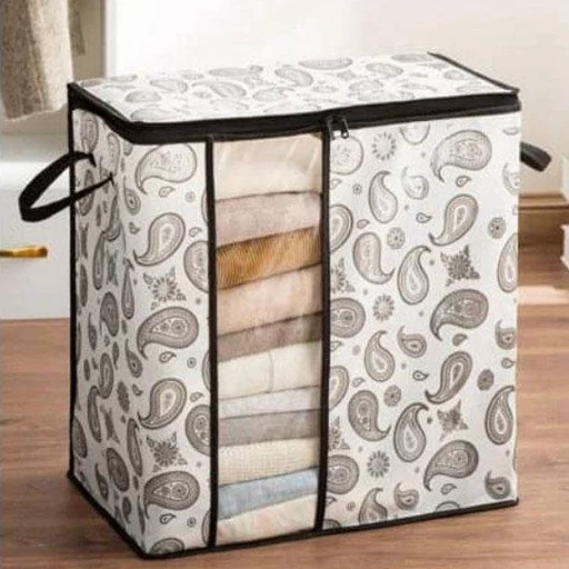 دارای پنجره طلقی شفاف دارای درب زیپدار و دو دسته قابل حمل مناسب برای نگهداری و نظم بخشیدن به البسه درون کمد