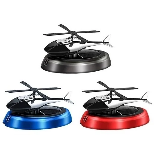 خوشبو کننده هلی کوپتر جدید سولار جزِ جدید ترین خوشبو کننده داخل خودرو می باشد که علاوه بر اسانس ادکلنی قوی قابل شارژ دل بخواه دارای زیبایی منحصر به فرد میباشد که به وسیله انرژی خورشید و نور بدون نیاز به باطری و شارژ باعث چرخش پره های هلی کوپتر میشود و داخل خودرو و روی هر سطح صاف دیگری قابل استفاده میباشد.