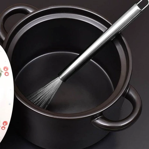 فرچه تابه شور مدل جدیدی از ابزار نظافتی با دسته استیل ضدزنگ و دارای سیم های جارویی که با جارو زدن کف قابلمه و ظروف می توانید به سادگی و سرعت آن را از آلودگی و باقیمانده غذا تمیز کنید. این فرچه تابه شور به ظروف آسیبی نمیرساند و از درجه سختی متوسط برخوردار است.
