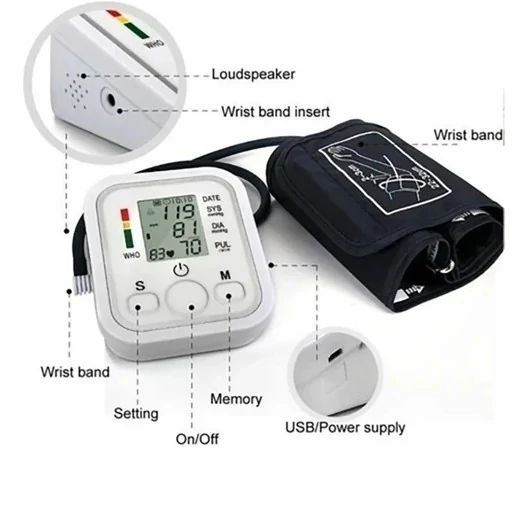 این دستگاه برای فشار خون و ضربان قلب استفاده می شود. دستگاه دارای یک صفحه نمایش LCD است که فشار خون سیستولیک و دیاستولیک و همچنین ضربان قلب را نمایش می دهد