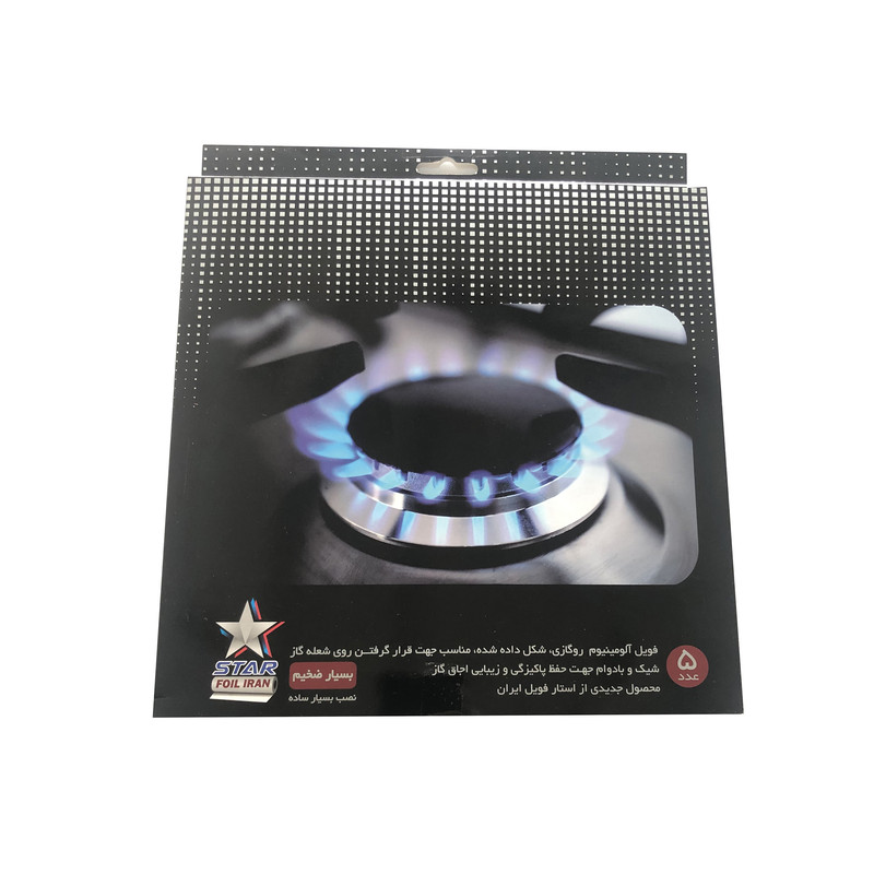 بانوان خانه دار برای آشپزی حداقل روزی 2 الی 3 بار از اجاق گاز استفاده می کنند و برایشان تمیزی و نظافت آن جهت حفظ سلامتی از اهمیت ویژه ای برخوردار است. از آنجایی که پاک کردن اجاق گاز به دلیل چرب شدن، ریختن مایعات، مواد غذایی و سوختن آن بر روی اجاق گاز کار دشواری است ما فویل آلومینیوم استار فویل ایران مدل روگازی را به شما پیشنهاد می دهیم. این محصول جهت راحتی شما شکل داده شده و به سادگی روی هر شعله قرار می گیرد. این فویل ها باعث می شوند تا آلودگی های ناشی از پخت و پز به بدنه اصلی اجاق گاز و سطوح داخلی آن وارد نشود، بعلاوه در اطراف فویل یک حالت فرورفتگی و برجستگی تعبیه شده که وقتی مایعاتی مانند شیر سرریز می شود این ویژگی باعث جمع شدن و ریختن آن داخل فویل می شود و از کثیف شدن گاز و اطراف آن جلوگیری می کند، در نتیجه همواره پاکیزگی و زیبایی اجاق گاز حفظ می شود و با هزینه ناچیز می توان این پوشش را تعویض نمود.