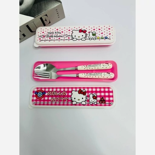ست قاشق و چنگال دخترانه هلوکیتی ساخته شده از استیل که به هیچ عنوان زنگ نمی زند دسته آن از جنس سرامیک ساخته شده که طرح بسیار زیبای هلوکیتی بر روی آن نقش بسته است.