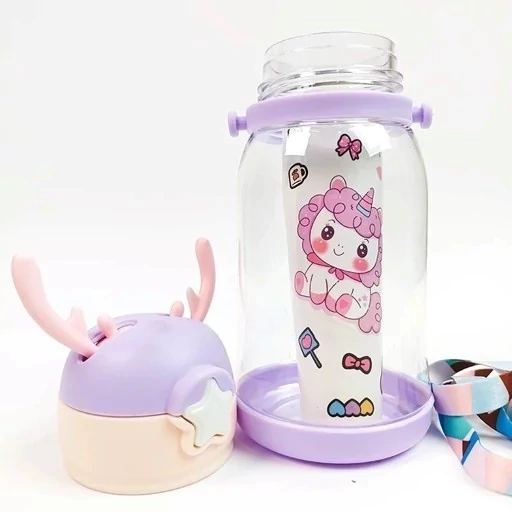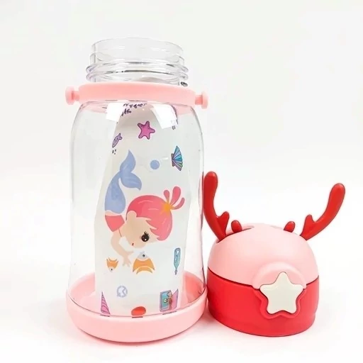 قمقمه نی دار شاخ گوزنی با بدنه پلاستیک شفاف اکرولیک نشکن و سبک مناسب کودک و حمل در مدرسه و مهد کودک است.