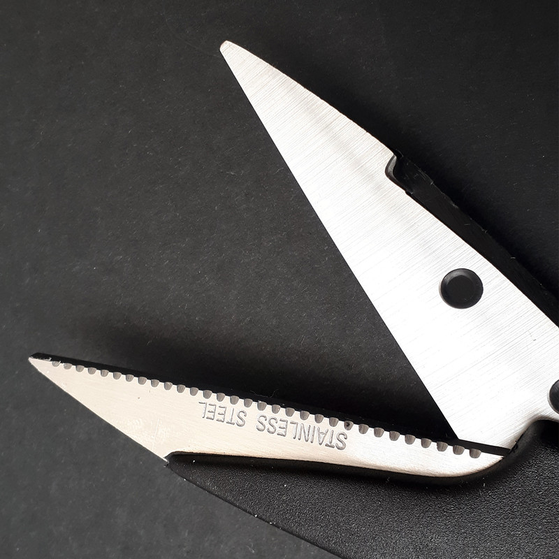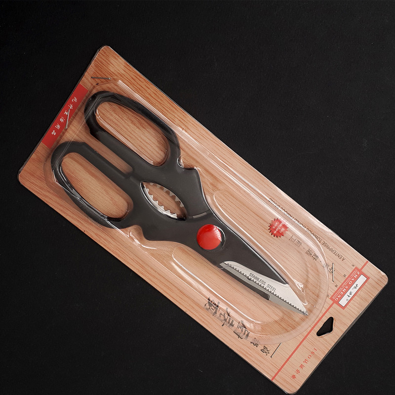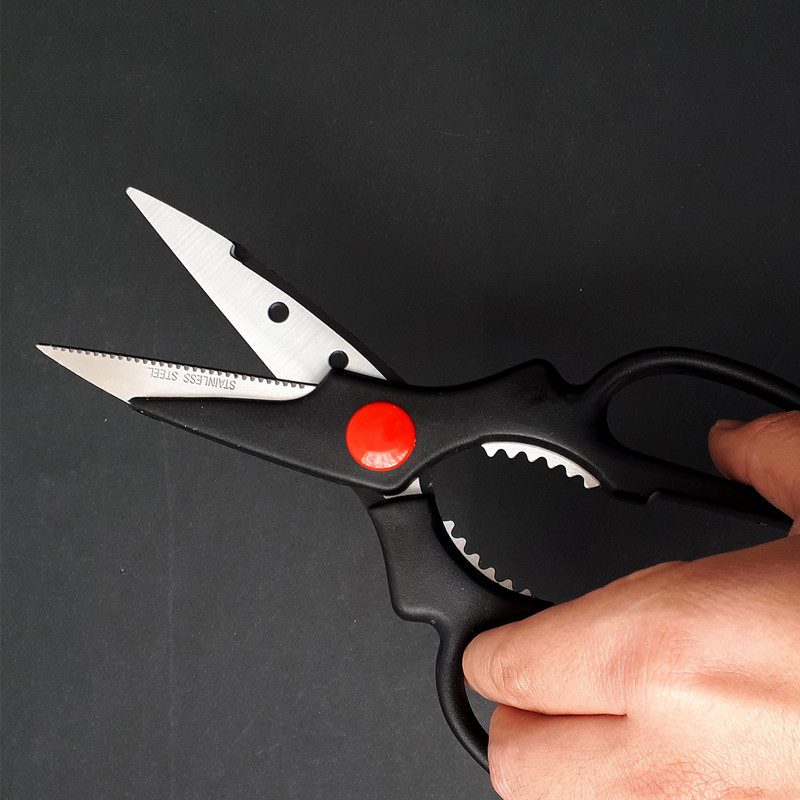 قیچی آشپزخانه وسیله ای چند کاربره با قابلیت بسیار بالا جهت استفاده برای خرد کردن مرغ و ماهی و گوشت و انواع سبزیجات می باشد ، وسیله ای لازم و ضروری برای بازکردن درب نوشابه ، رب ، کنسرو ،پاکت شیر و دوغ و شکستن گردو و بادام هم میباشد همچنین میتوان از قیچی آشپزخانه برای تکهکردن مرغ بریان ، ماهی ، تکهکردن نان و حتی خردکردن تکههای کوچک گوشت هم استفاده کرد.، این قیچی دارای دو قسمت شیاردار فلزی در فضای بین دستههای قیچی است که میتوان پوست سخت بادام و گردو را به کمک آن شکست. مشکل ماهی خرد کردن و لیز خوردن آن با لبه های اره ای ریز این قیچی به راحتی حل میشود .و از طرفی دارای لبه مخصوص جهت باز کردن درب نوشابه شیشه ای و رب و کنسرو و … می باشد. این قیچی برای انجام کارهای روزمرهی آشپزخانه بسیار مناسب و سبک و خوش دست است.
