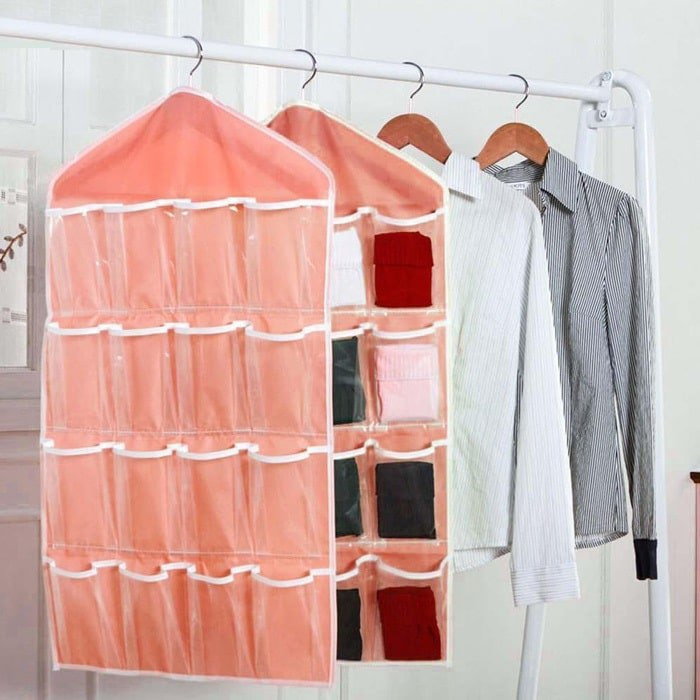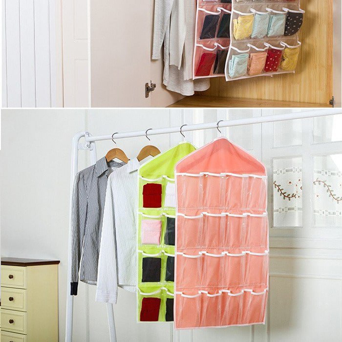آویز جاجورابی داخل کمد ، محصولی با طراحی ظاهری ساده و در عین حال بسیار کاربردی جهت استفاده در منازل است . در قسمت بالای این کالا جای آویز لباس کمدی طراحی شده که می توانید با استفاده از آن به سادگی جاجورابی را داخل کمد ، روی چوب لباسی و یا هر جای دیگری که نیاز دارید آویزان کنید . وجود 16 محفظه نگهدارنده در جاجورابی کمدی علاوه بر جوراب امکان نگهداری کفش ، لباس های کودک و دیگر لوازم و وسایل کوچک را فراهم نموده است. به کارگیری این محصول علاوه بر ایجاد نظم و ترتیب به لوازم داخل کمد شما ، دسترسی سریع و آسان تر به جوراب و یا سایر لوازم کوچک داخل کمد را برای شما فراهم می کند