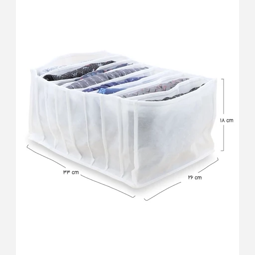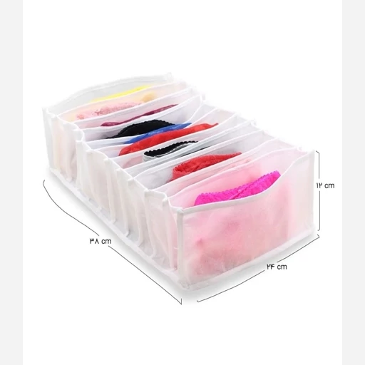 توضیحات سایز Small دارای 11 جیب اندازه 11*17*38 سانتیمتر، مناسب روسری، لباس نوزاد، لباس زیر، جوراب، کمربرند، کراوات,سایز Medium دارای 11 جیب، اندازه 12*24*38