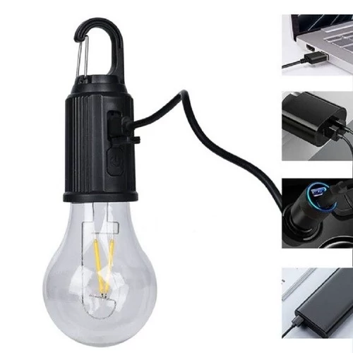 لامپ شارژی کمپی یک لامپ کاربردی با نور آفتابی و سه شدت نوری متفاوت است. این مدل لامپ اضطراری مشابه لامپهای عادی طراحی شده است؛ با این تفاوت که روی بدنه یک درگاه برای شارژ و یک دکمه برای On/Off در نظر گرفته شده است. در انتهای لامپ نیز یک گیرهی کارابین مانند قرار دارد که کمک میکند بتوان لامپ را به راحتی آویزان کرد. از این مدل لامپ معمولا در کمپینگها استفاده میشود و اگر اهل سفر هستید، توصیه میشود این مدل لامپ را همراه خود داشته باشید. با فشردن دکمهی روی بدنه، لامپ با شدت نور زیاد روشن میشود؛ با فشردن مجدد دکمه میتوان شدت نور را کمتر کرد. بعد از چهار بار فشردن دکمه نیز لامپ خاموش خواهد شد. برای شارژ لامپ شارژی کمپی فیلامنتی از کابل USB همراه محصول استفاده میشود. این کابل را میتوان به آداپتور شارژر، پاوربانک، لبتاب و … متصل کرد. لامپ بعد از 4 الی 6 ساعت شارژ میشود و با توجه به نور انتخابی و میزان استفاده، میتوان تا چند ساعت از نور آن استفاده کرد.