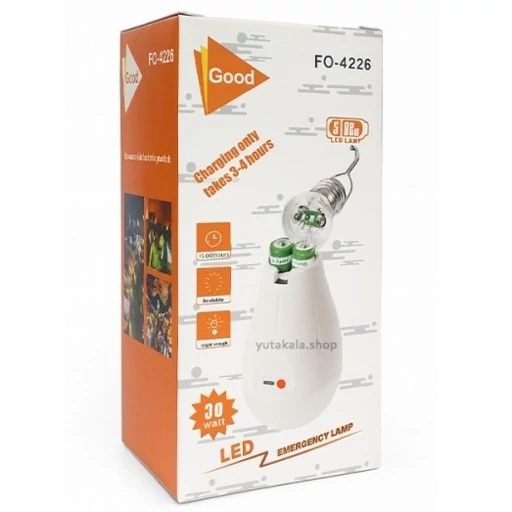 این محصول یک لامپ LED اضطراری مدل FO-4226 برند Good است. طراحی آن شبیه به لامپ معمولی (با سرپیچ E27) بوده اما قابلیت‌های ویژه‌ای مانند شارژ داخلی با باتری لیتیومی و کارکرد در زمان قطع برق دارد. این لامپ 30 وات علاوه بر استفاده به عنوان روشنایی معمولی، در زمان نبود برق به طور خودکار به حالت اضطراری تبدیل می‌شود.